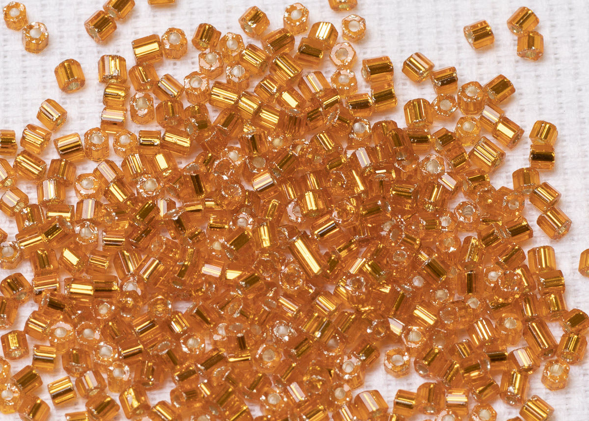 Бисер Чехия рубка 09/0 50г 97000 прозрачный оранжевый с серебряным прокрасом